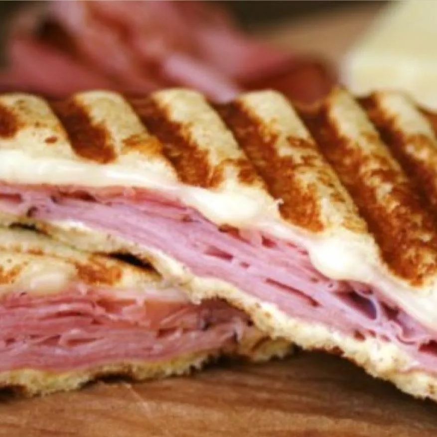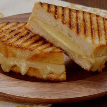 Honey roast ham, mature Cheddar cheese & Mozzarella cheese, butter in toasted white bread.